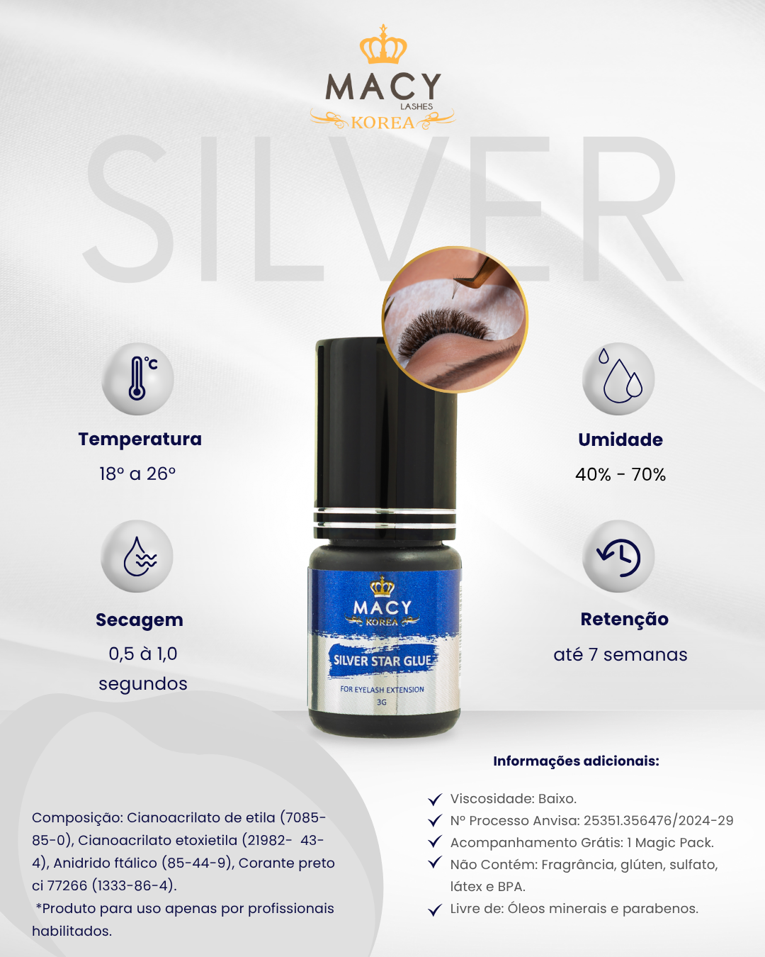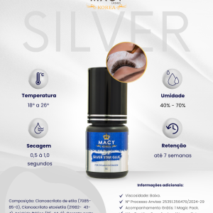 A Cola Macy Silver foi desenvolvida com a mais avançada tecnologia Nano B+, que proporciona eficiência excepcional para os profissionais de extensão de cílios. Além de uma retenção superior, mantendo os cílios firmes e no lugar por até 7 semanas. Sua polimerização rápida, com tempo de secagem de 0,5 a 1 segundo, agiliza o processo de aplicação, permitindo que os profissionais trabalhem de forma rápida e precisa.
